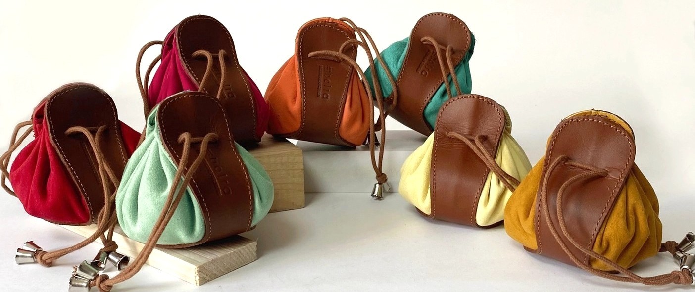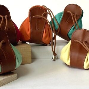 Monedero de piel tipo saco con cierre de cordón
